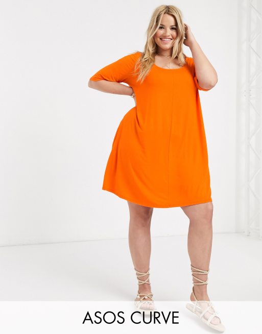 ASOS DESIGN Curve swing t shirt dress with concealed pockets in orange
