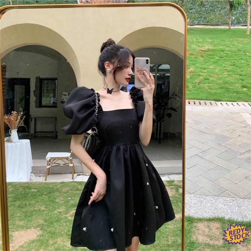 Filipiniana clearance dress black, Filipiniana dress Puff Short Sleeve modern Hepburn wind joker black western style the fashion show thin waist bitter fleabane princess skirt clearance