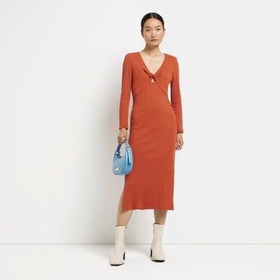 River island orange clearance midi dress, River Island Womens Orange Ribbed Bodycon Midi Dress 25.00 clearance