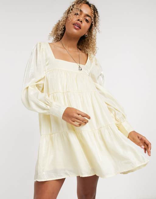 Square neck swing clearance dress, Puff Sleeve Midi Dress for Women Square Neck Cotton Linen Swing clearance