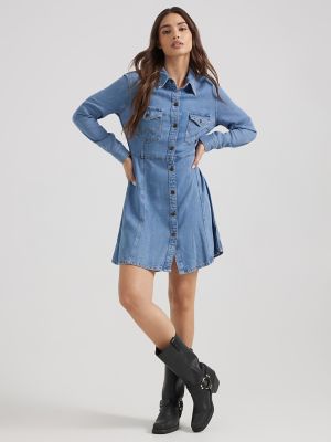 Women s Wrangler Retro Long Sleeve Denim Midi Dress