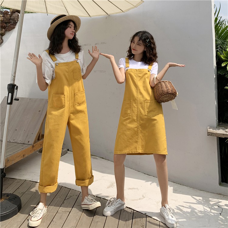 Yellow denim overall clearance dress