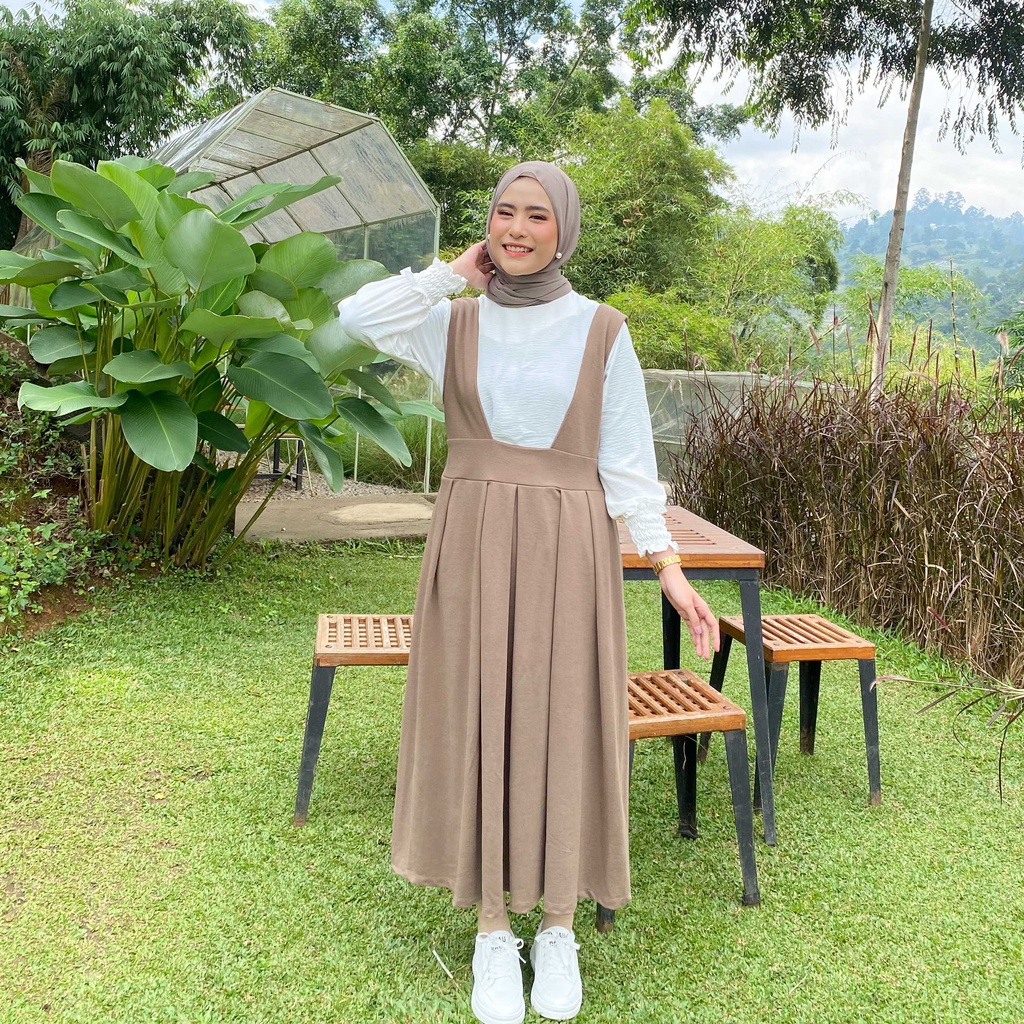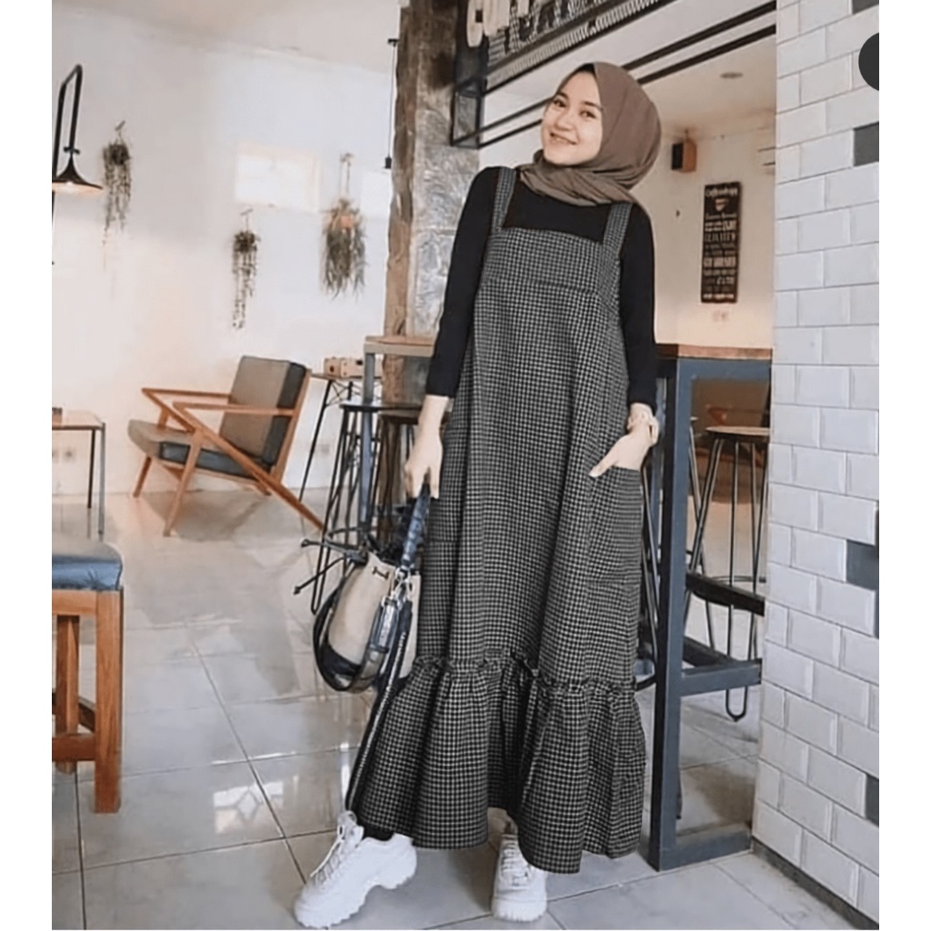 Terbaik Jubal Overall Dress Kotak Set Inner JuKyung Korean Gingham Style by STUD Hijabstore