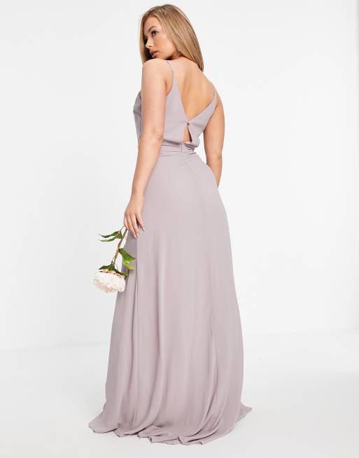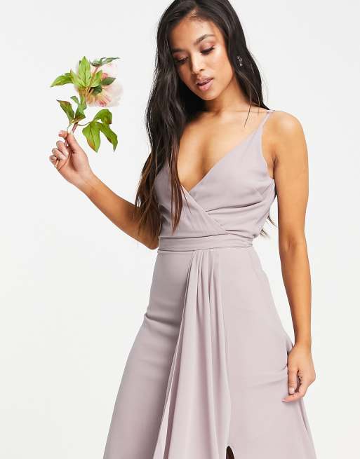 TFNC Bridesmaid cami wrap maxi dress with fishtail in light grey