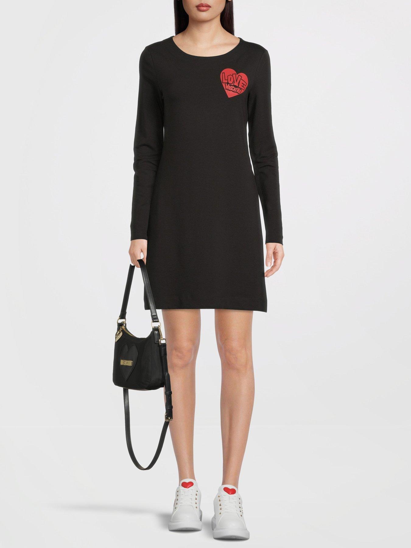 Moschino clearance tshirt dress, Heart Logo Long Sleeve T Shirt Dress Black clearance