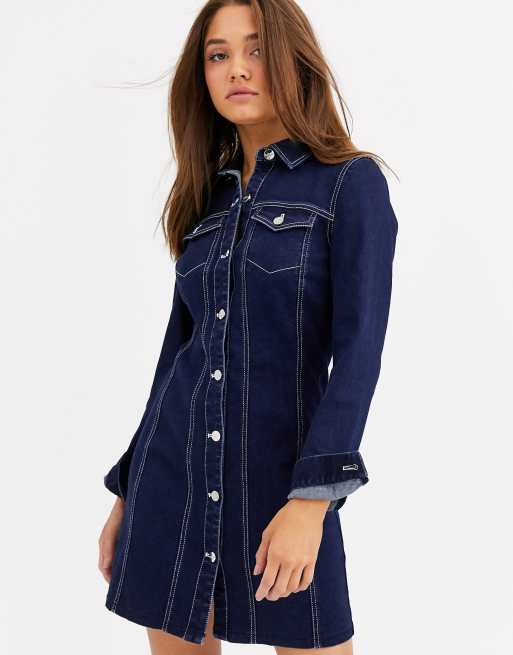 Buy Lipsy Blue Petite Bodycon Button Through Denim Dress from Next