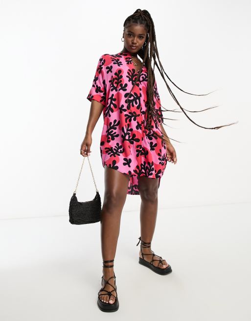 Coral clearance shirt dress, Monki mini shirt dress in pink and orange coral print ASOS clearance