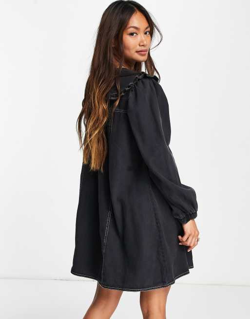 River island black clearance denim dress, River Island long sleeve collared denim mini dress in black clearance