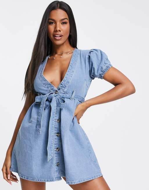 I Saw It First mid wash long sleeve denim skater dress ASOS