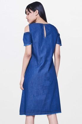 Cold shoulder jean clearance dress, Buy Off Shoulder Ruffle Detail Denim Dress at Ubuy Palestine clearance