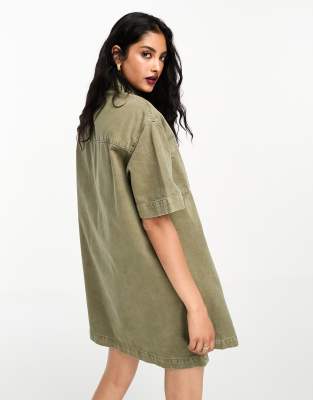 ASOS DESIGN short sleeve denim shirt dress in khaki