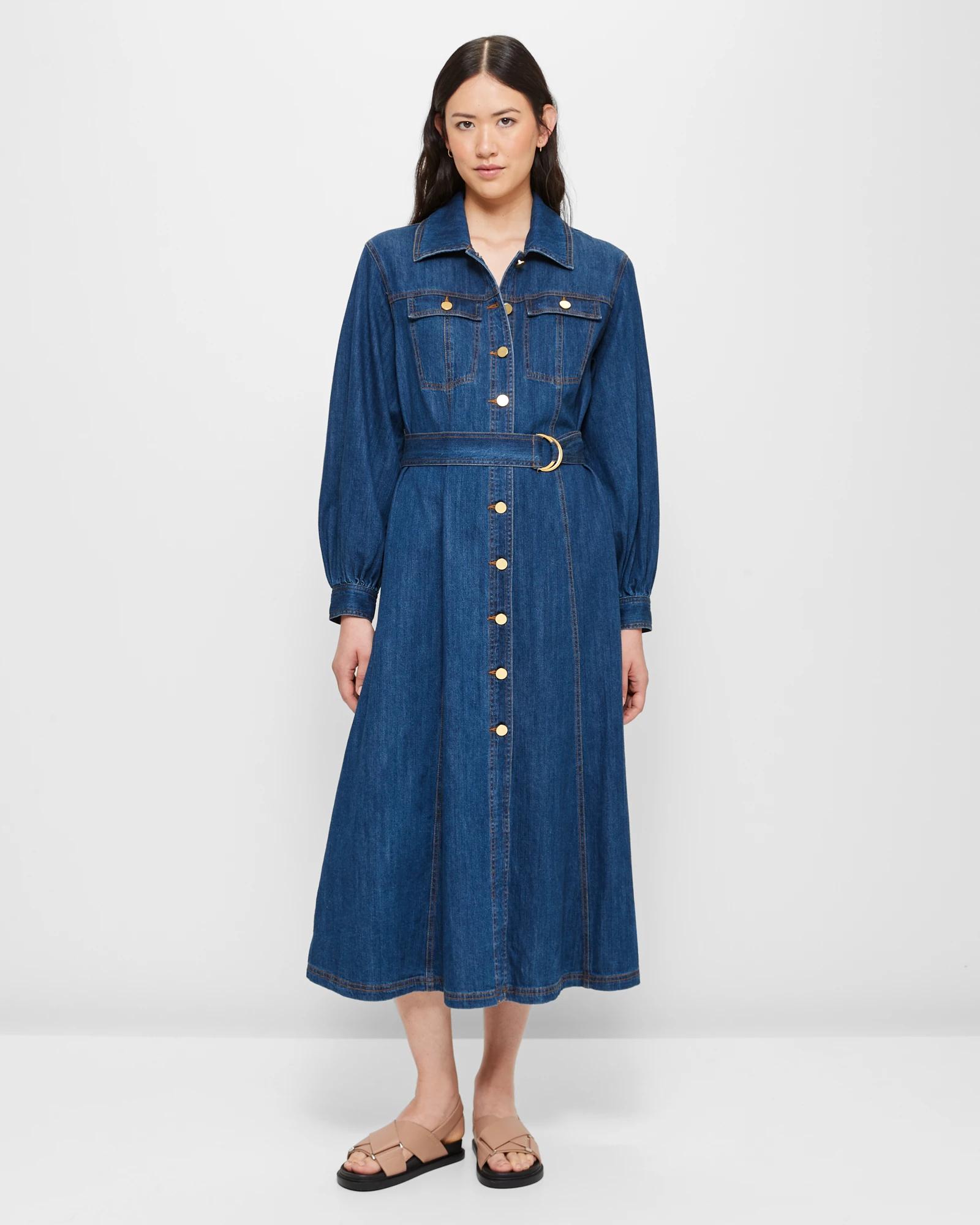 Denim button up clearance shirt dress, Denim Shirt Maxi Dress Target Australia clearance