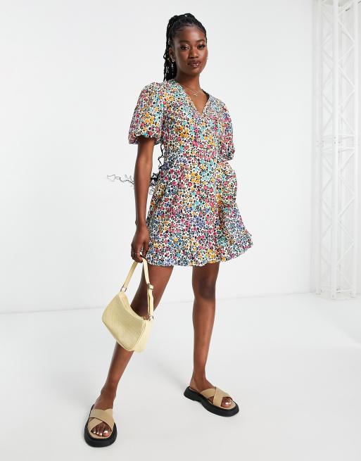 Zara mini floral clearance dress, Influence wrap front mini dress in ditsy floral print ASOS clearance