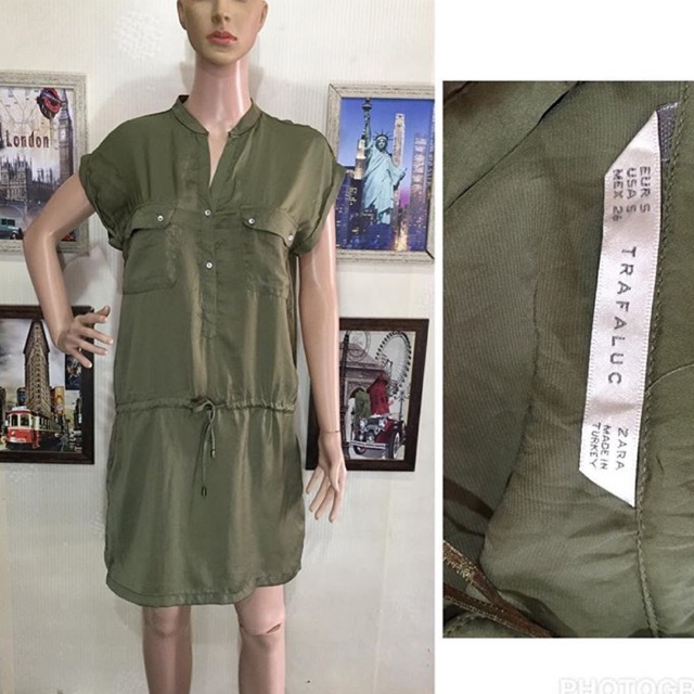 Zara trafaluc green clearance dress, Zara olive green dress size Small Shopee Philippines clearance