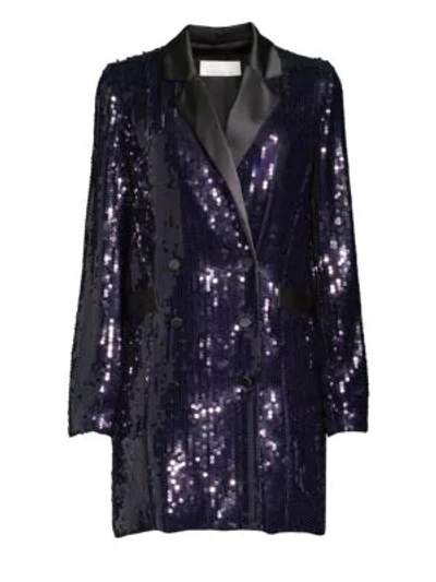 Fleur Du Mal Sequin Double breasted Blazer Dress In Deep Amalfi