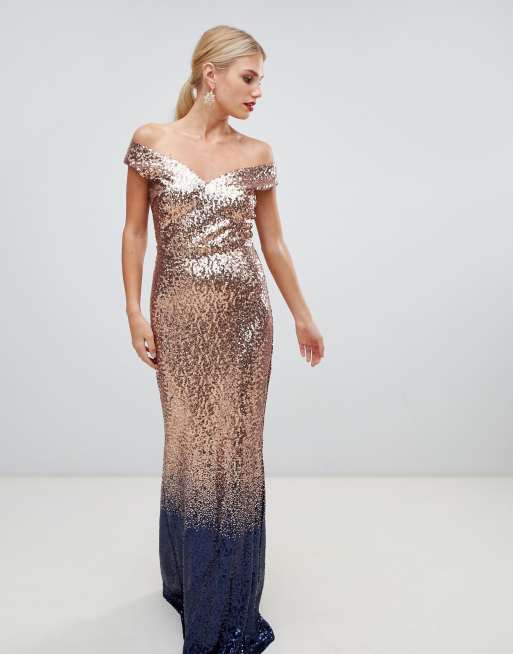 City Goddess off the shoulder long sleeve sequin maxi dress ASOS