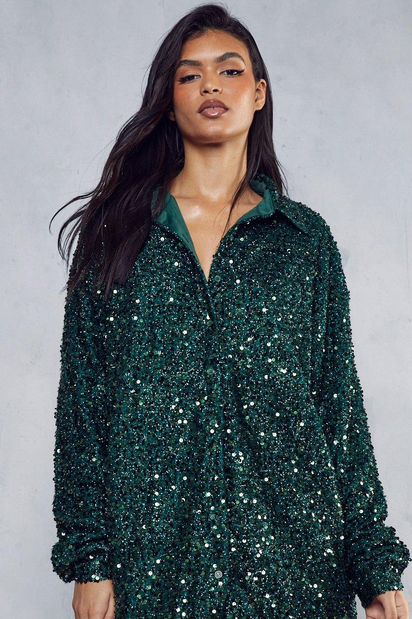 Black Velvet Sequin Oversized Shirt Dress PrettyLittleThing CA