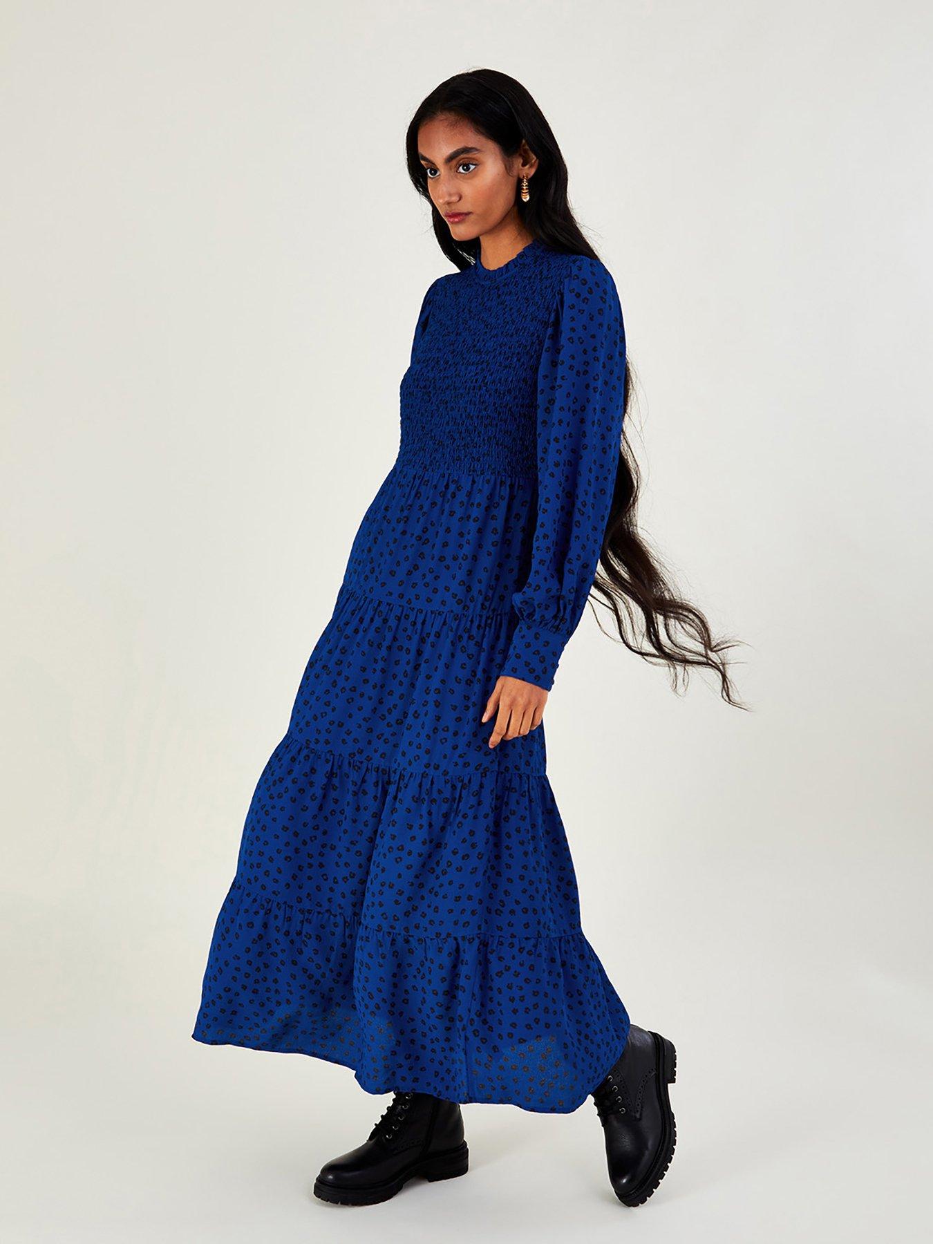 Monsoon Sally Spot Shirred Midi Dres Blue Very Ireland