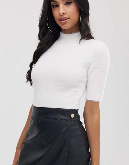 Buy Lipsy Black PU 2 in 1 High Neck Long Sleeve Knitted Dress from