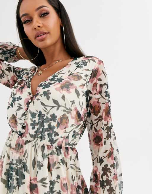 Lipsy clearance boho dress, Lipsy Floral Regular Ruched Front Black Maxi Dress clearance