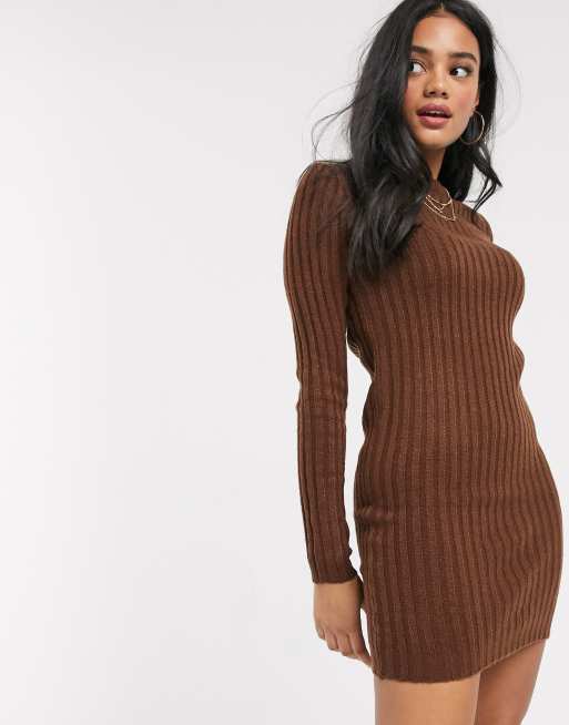 Womens High Neck Sweater Jumper Dress Ladies Casual Bodycon Mini