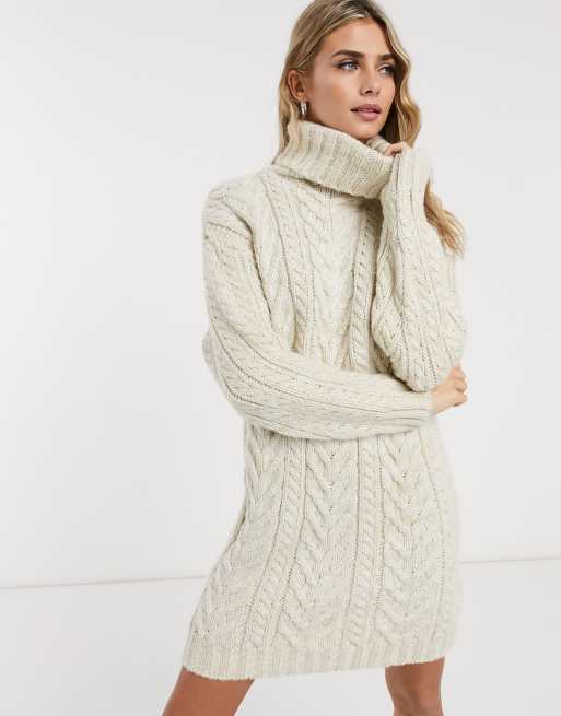 Miss Selfridge jumper dress with roll neck in oatmeal ASOS