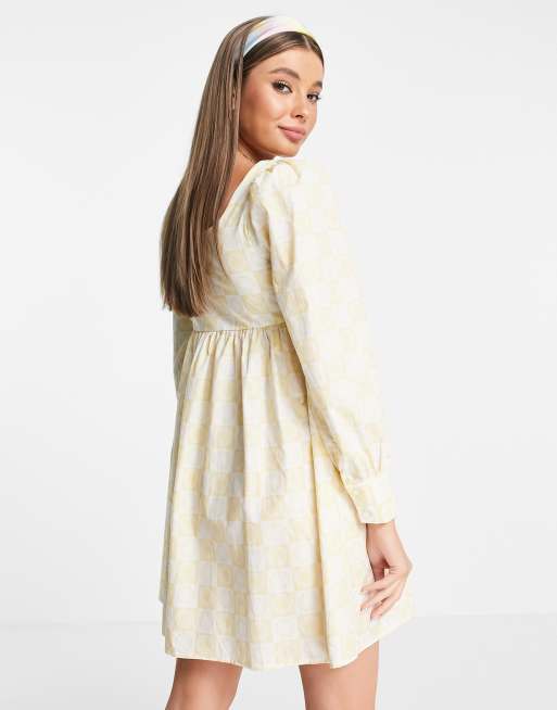 Glamorous long sleeve mini prairie dress in yellow check print ASOS