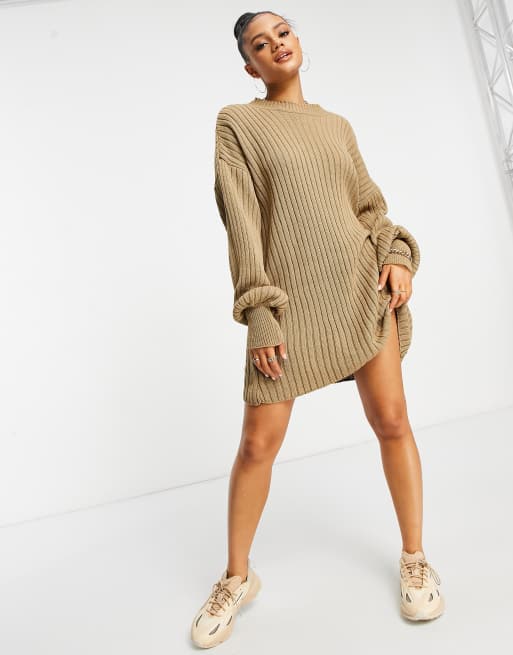 I Saw It First knitted jumper dress with belt in cream ASOS