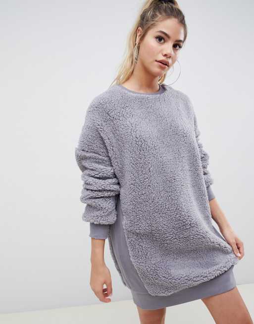 Borg clearance jumper dress, Buy Missguided Stone Faux Leather Borg Teddy Mix Oversized Sweater clearance