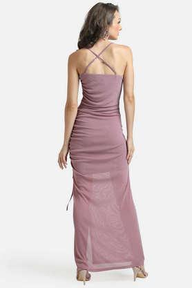 Buy KAZO Mauve Solid Cowl Neck Mesh Women s Maxi Dress Shoppers Stop