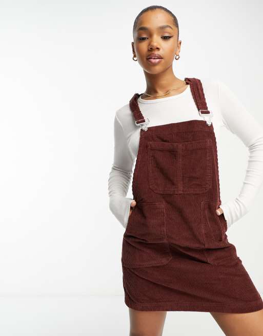 DTT Lucine cord pinafore dress with pockets in chocolate brown