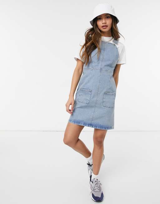 Dungaree clearance dress asos, ASOS DESIGN denim dungaree pinny dress in midwash clearance