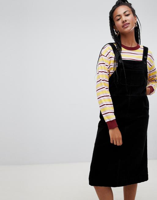 Corduroy midi pinafore clearance dress, Monki cord midi pinny dress in black clearance