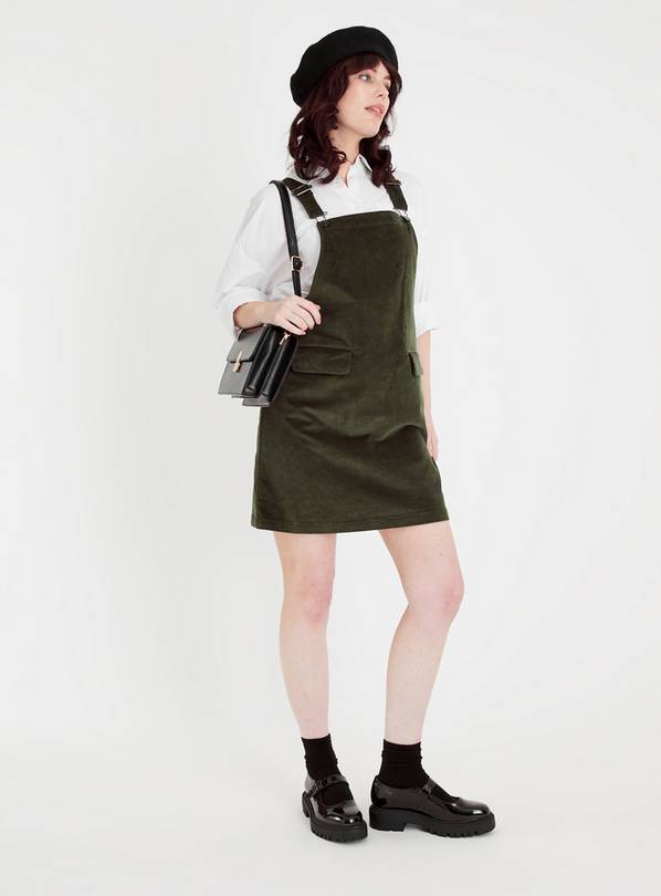 Womens Dark Green Corduroy Pinafore Dress Tu clothing