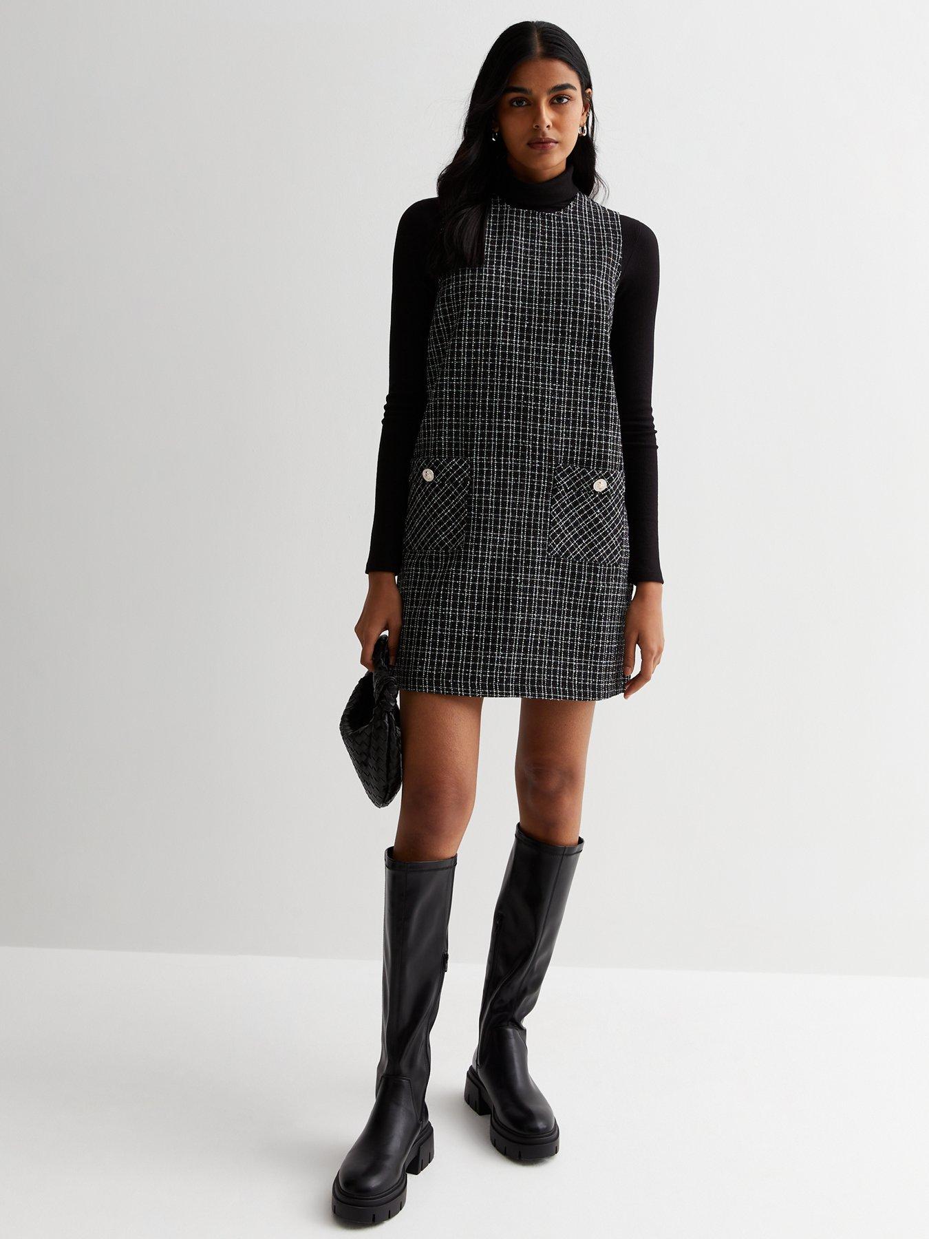 New Look Black Check Boucle Mini Pinafore Dress Very Ireland