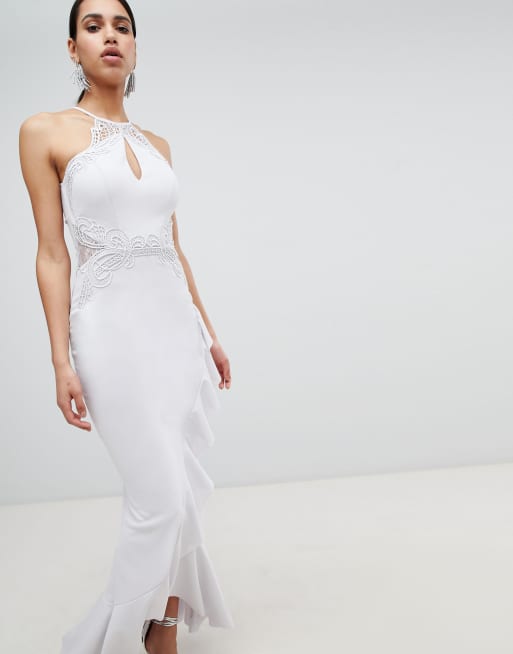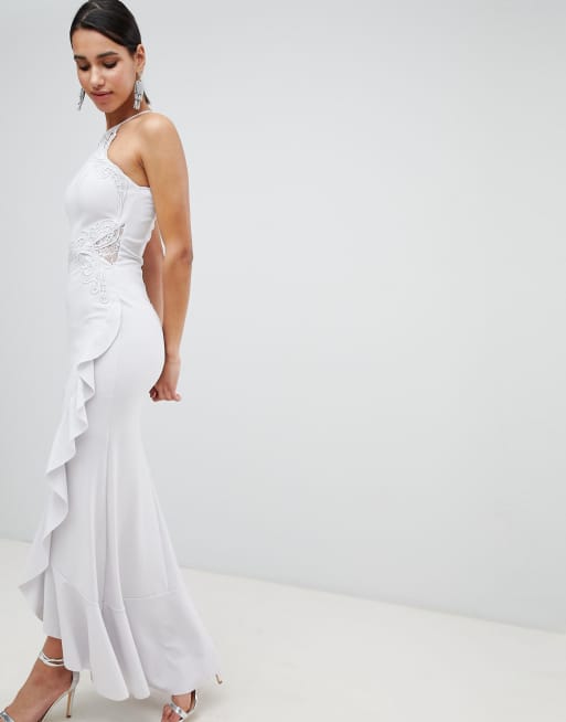 Lipsy lace applique clearance frill maxi dress, ASOS DESIGN Bridesmaid bias cut chiffon maxi dress with applique clearance