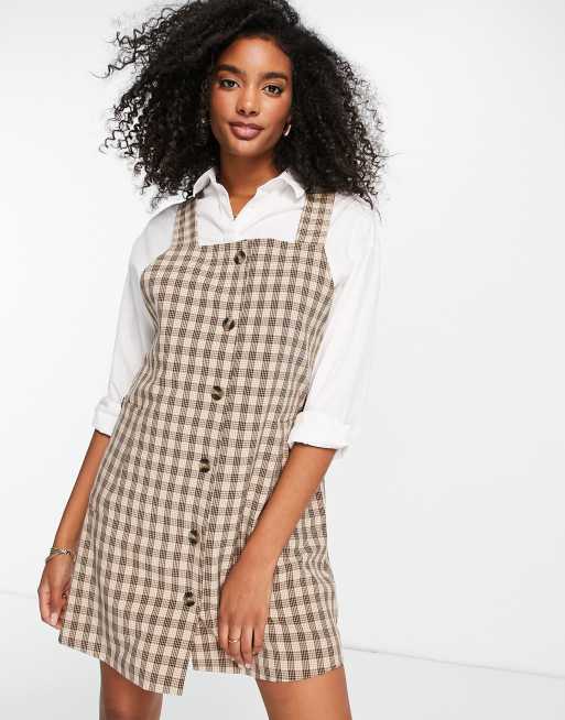 Mini clearance dungaree dress, Vila dungaree mini dress with button front in check print clearance