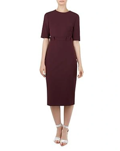 Ted clearance baker maggidd, Ted Baker Maggidd Burgundy Ruffle Waist Pencil Dress Size 1 UK 8 clearance