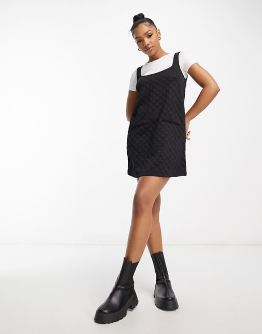 Miss Selfridge quilted pinny dress in black