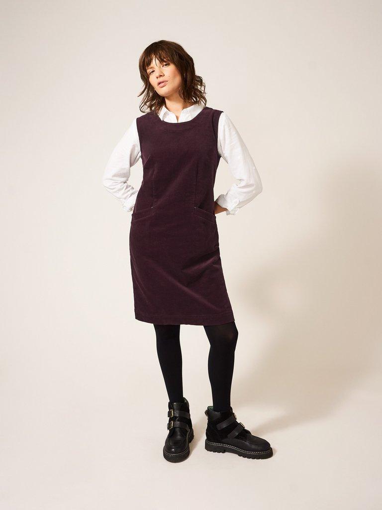 White Stuff Emmie Organic Cord Midi Pinny Dress Plum at John