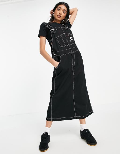 Carhartt WIP denim dungaree midi dress with contrast stitching