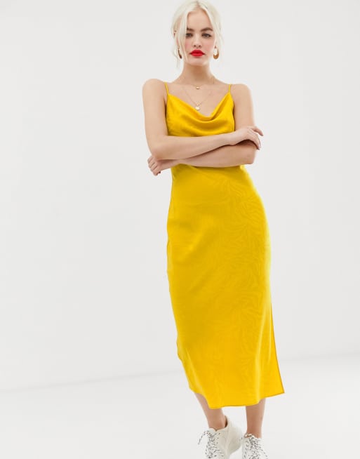 Yellow cowl neck clearance dress, Rent Lavish Alice Yellow Floral Cowl Neck Asymmetric Midi Dress clearance