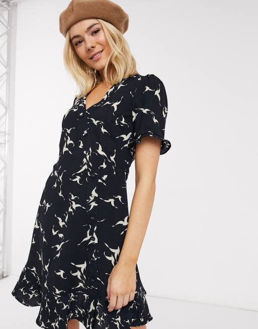 Oasis bird print clearance dress, OASIS 14 NAVY Blue Bird Print Tea Dress Pink Green Yellow Grey clearance