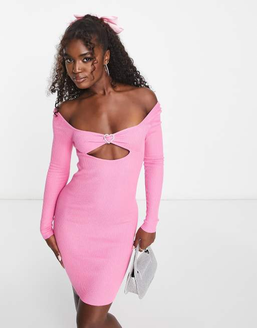 Miss selfridge pink clearance dress, Miss Selfridge rib knit sweetheart neck diamonte buckle mini dress clearance