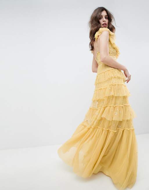 Needle and thread clearance yellow dress, Yellow Needle Thread Embelished Maxi Dress StyleSwap clearance