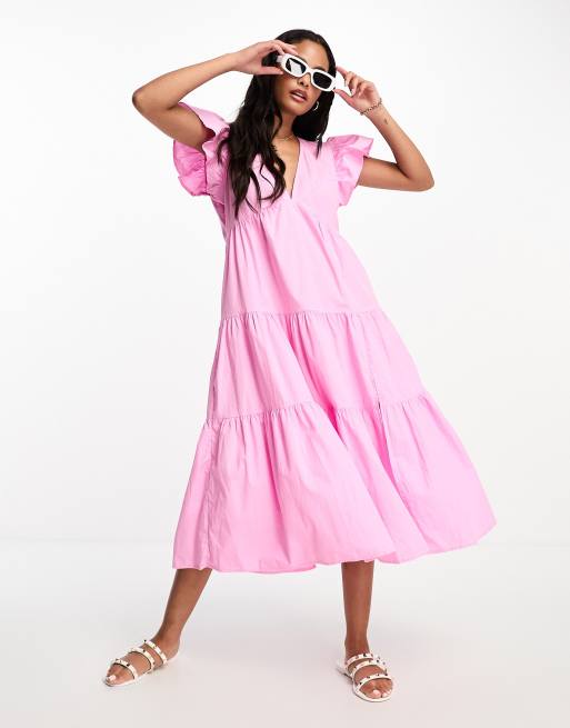 Vero moda pink clearance dress, Vero Moda frill sleeve midi dress in pink ASOS clearance