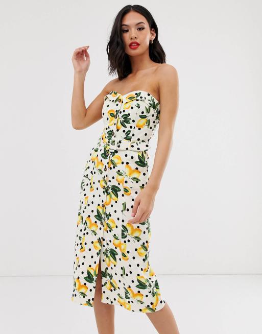 Oasis lemon bandeau clearance dress, Oasis Lemon Midi Dress Black Multi XS clearance