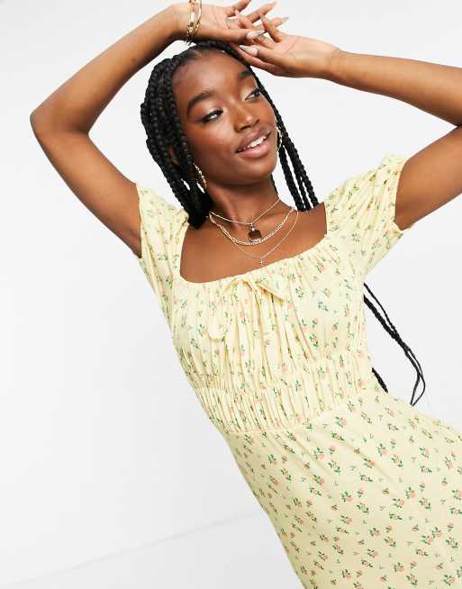Yellow clearance milkmaid dress, Floral Front Slit Milkmaid Midi Dress ASTR The Label clearance
