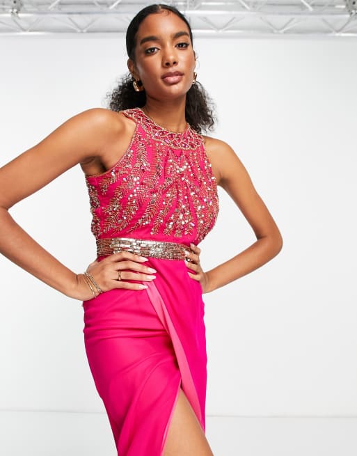 Virgos lounge pink clearance dress, VIRGOS LOUNGE DRESS MAXI CORNELIA BEADED WEDDING COCKTAIL UK4 clearance