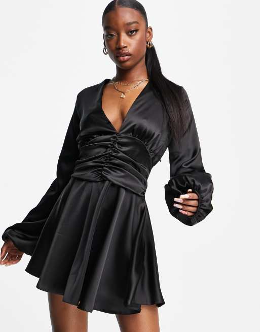 John Zack satin mini skater dress in black ASOS